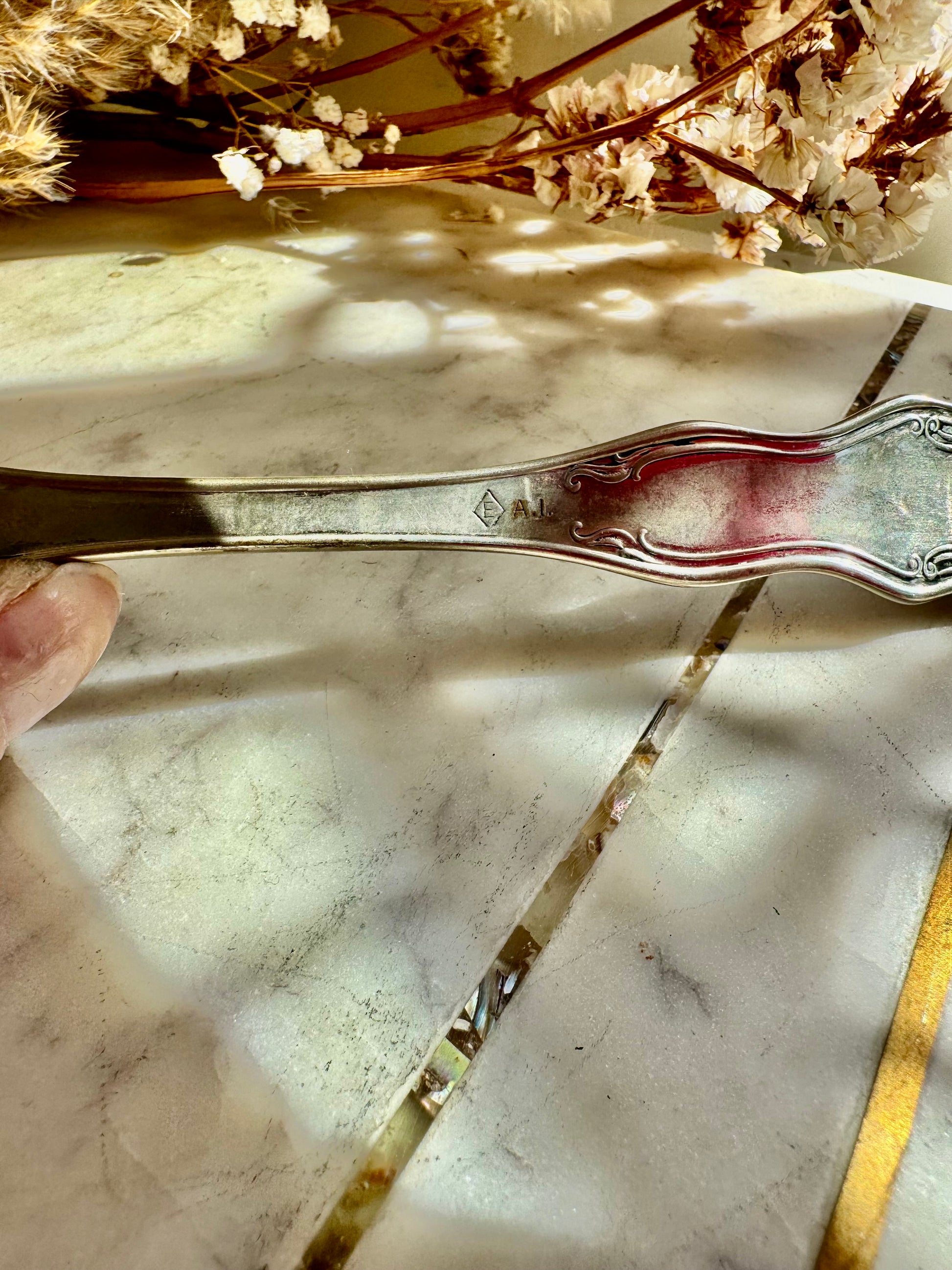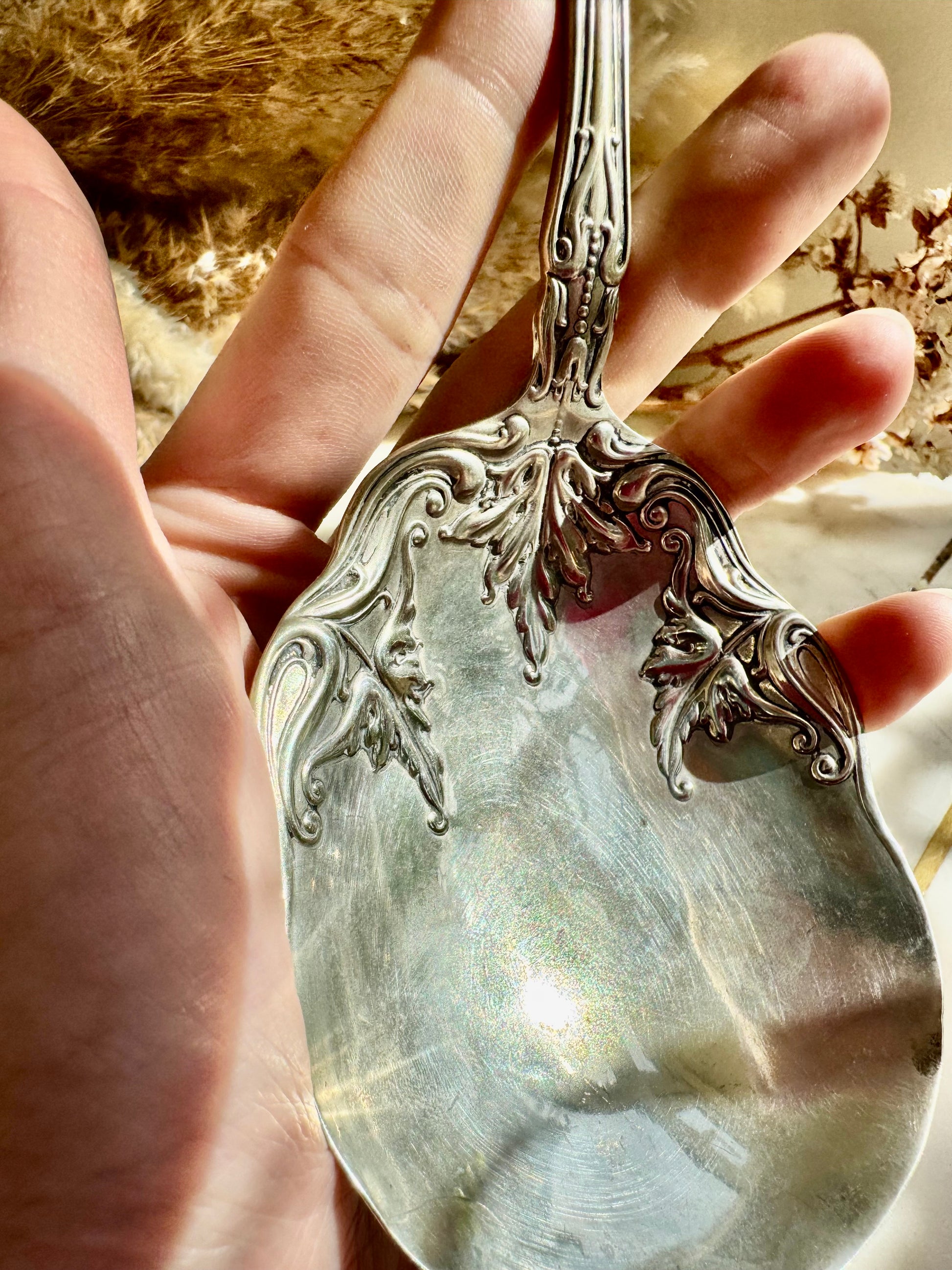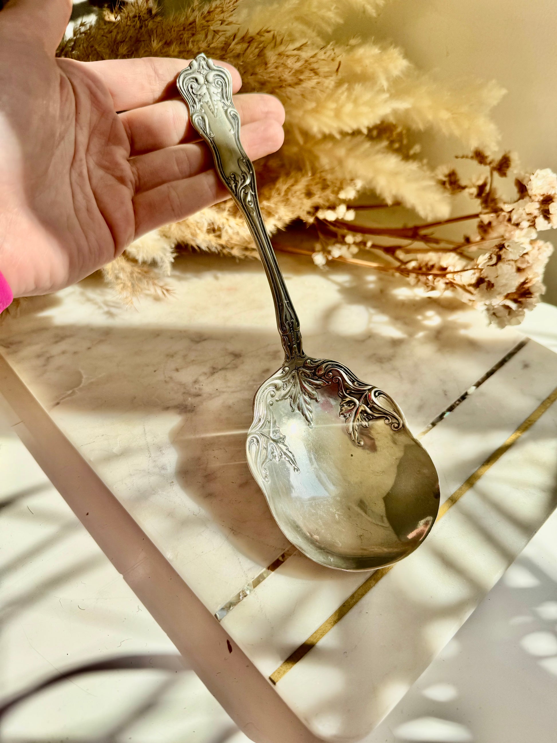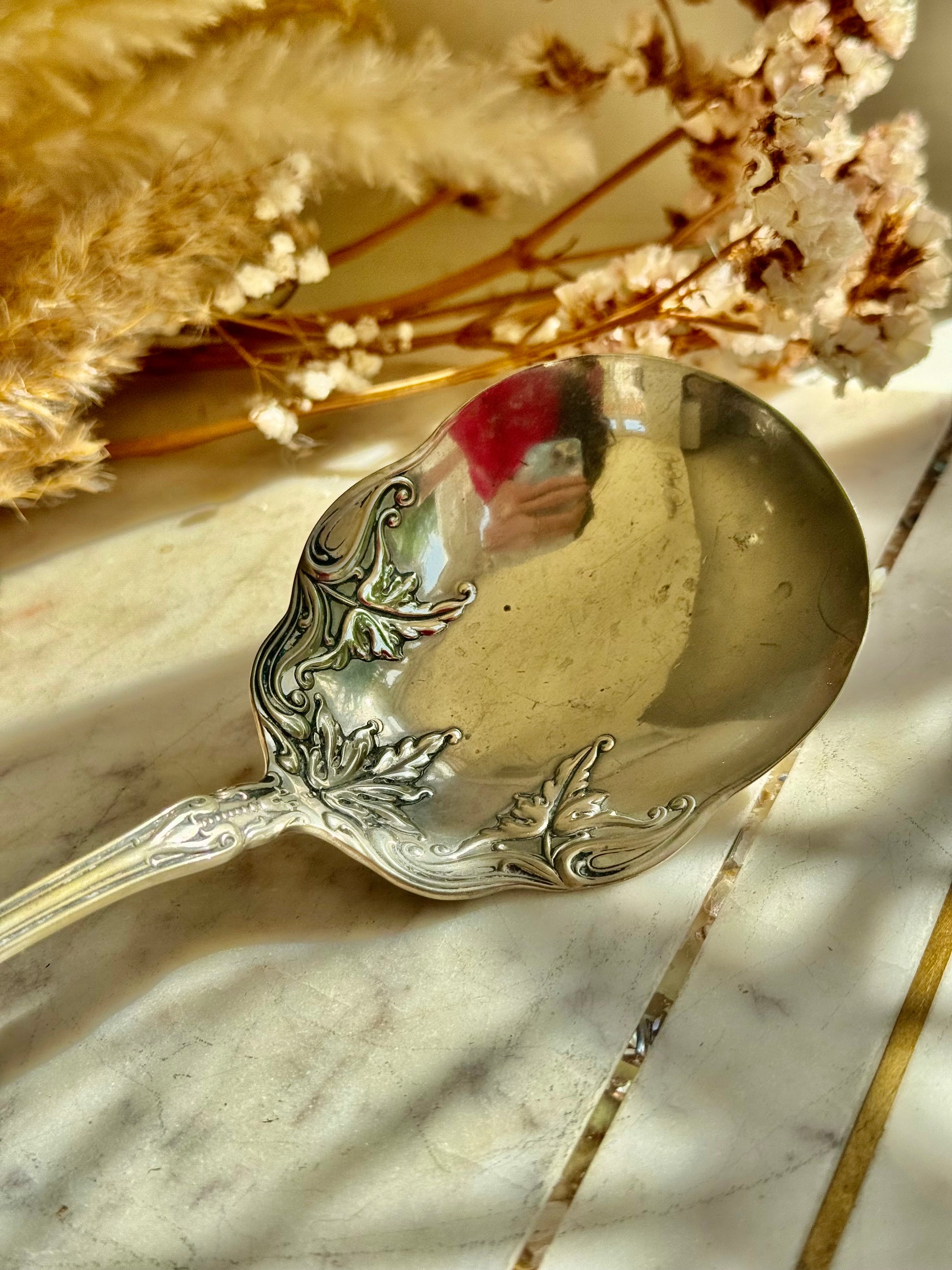 Antique Art Nouveau Silver Plated Serving Spoon with Botanical Relief
