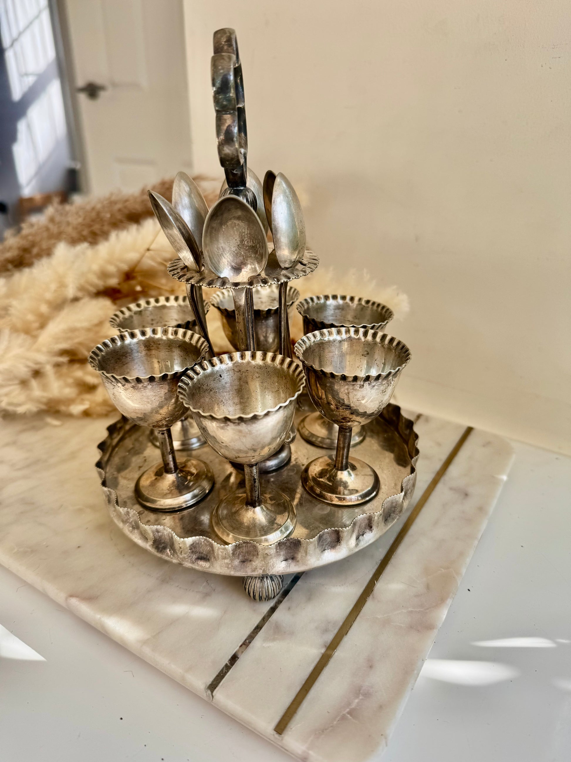 Antique Edwardian Silver Plated Egg Cruet Set by William Batt & Sons, c. 1900