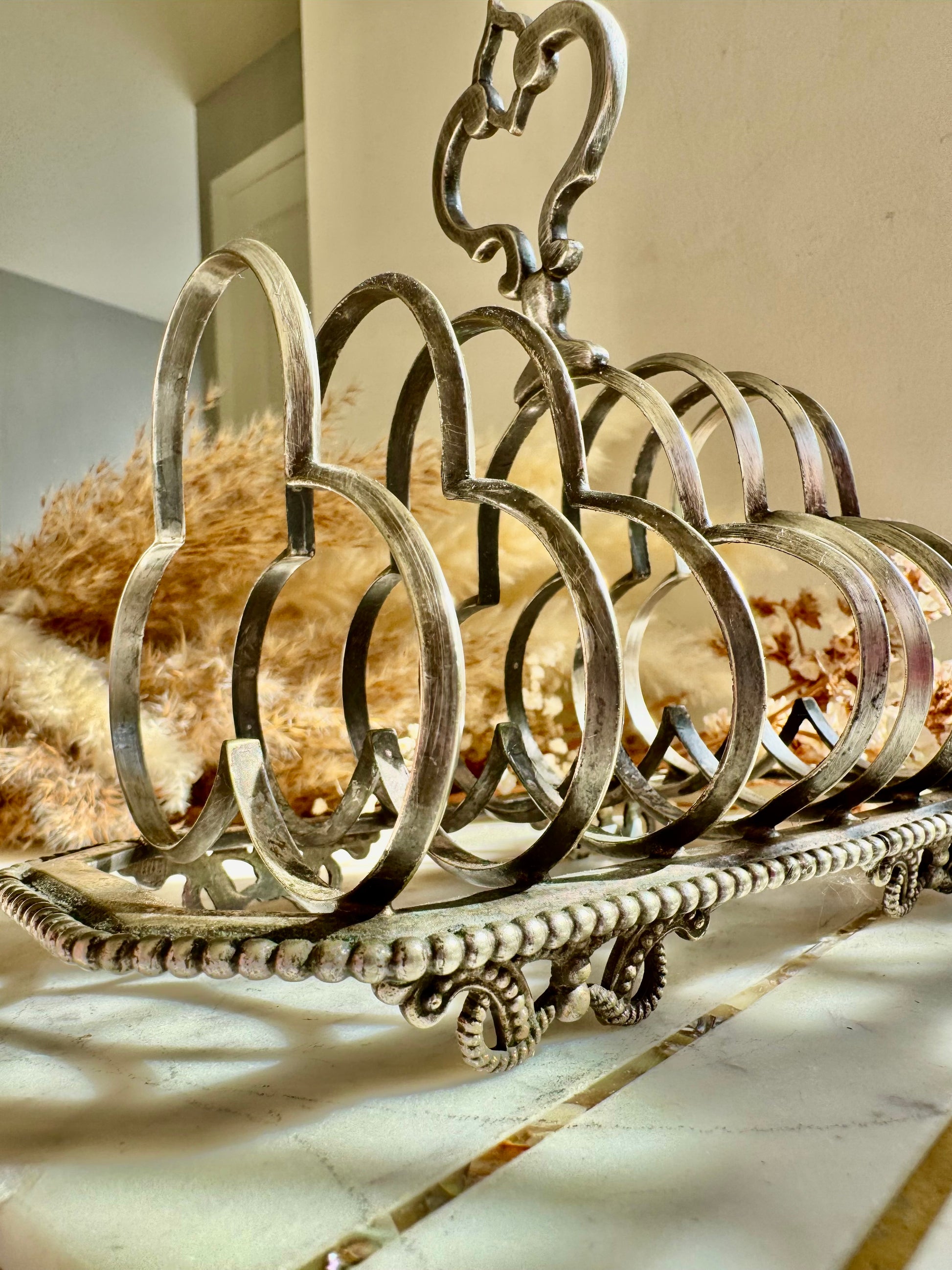Antique Silver Plated Toast Rack by Harrison Brothers & Howson – 8 Slot, Ornate Handle, Sheffield c.1890